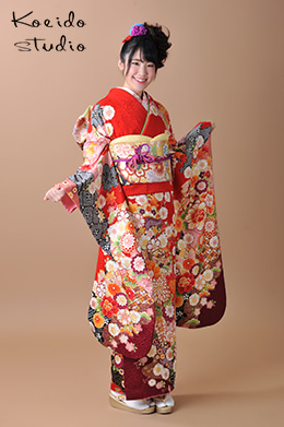 赤い着物と黒い背景でおしゃれですね!!