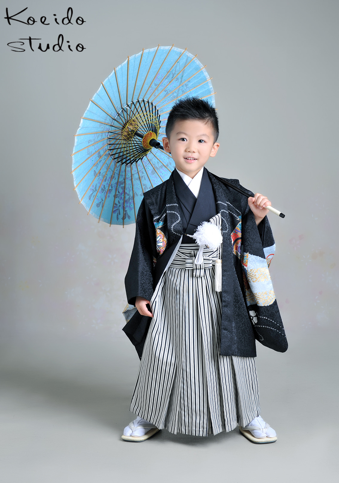 まずは傘を持ってもらってカッコよく![]()