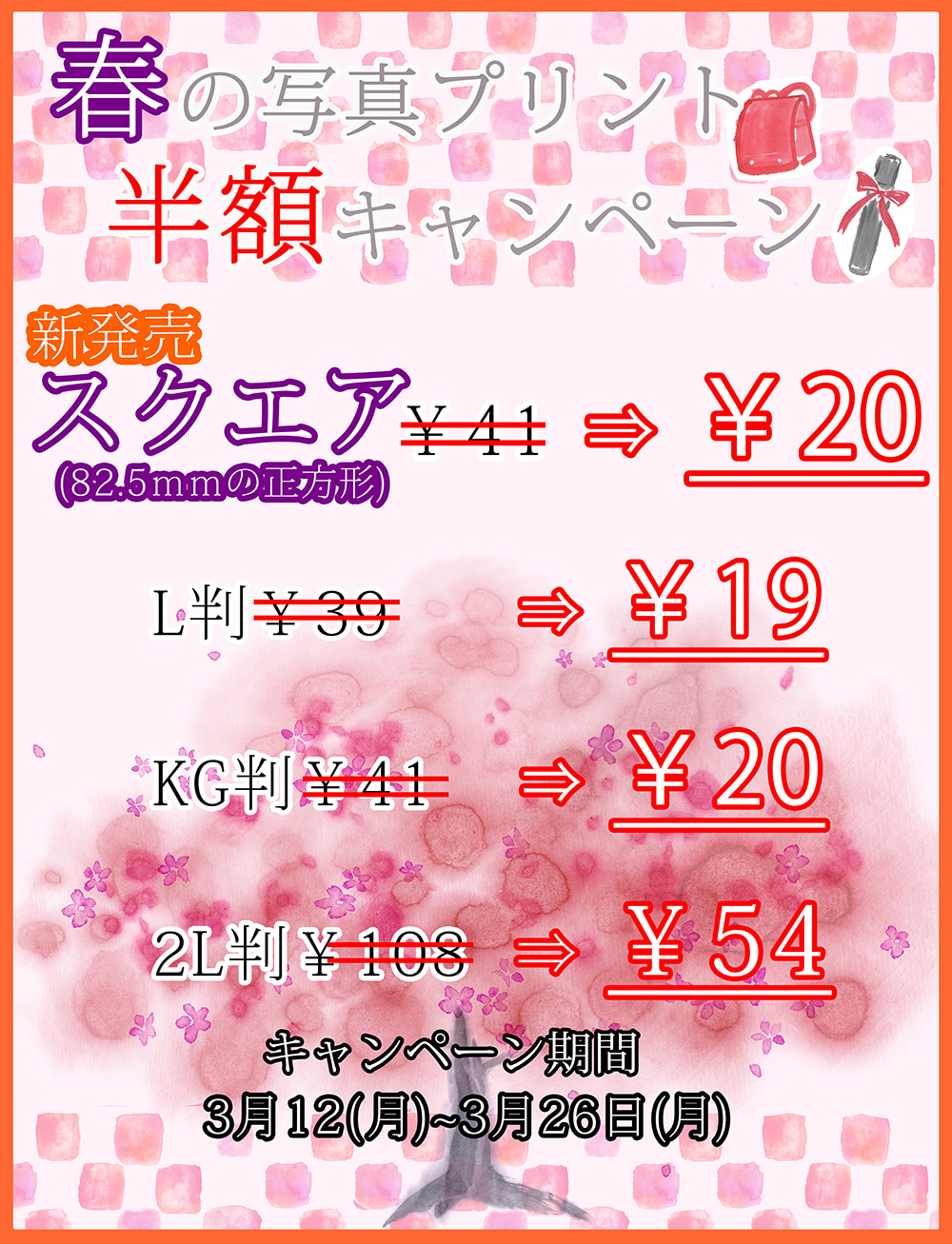 スクエアプリント(真四角のお写真)が対象に入っておりますヽ(゜▽、゜)