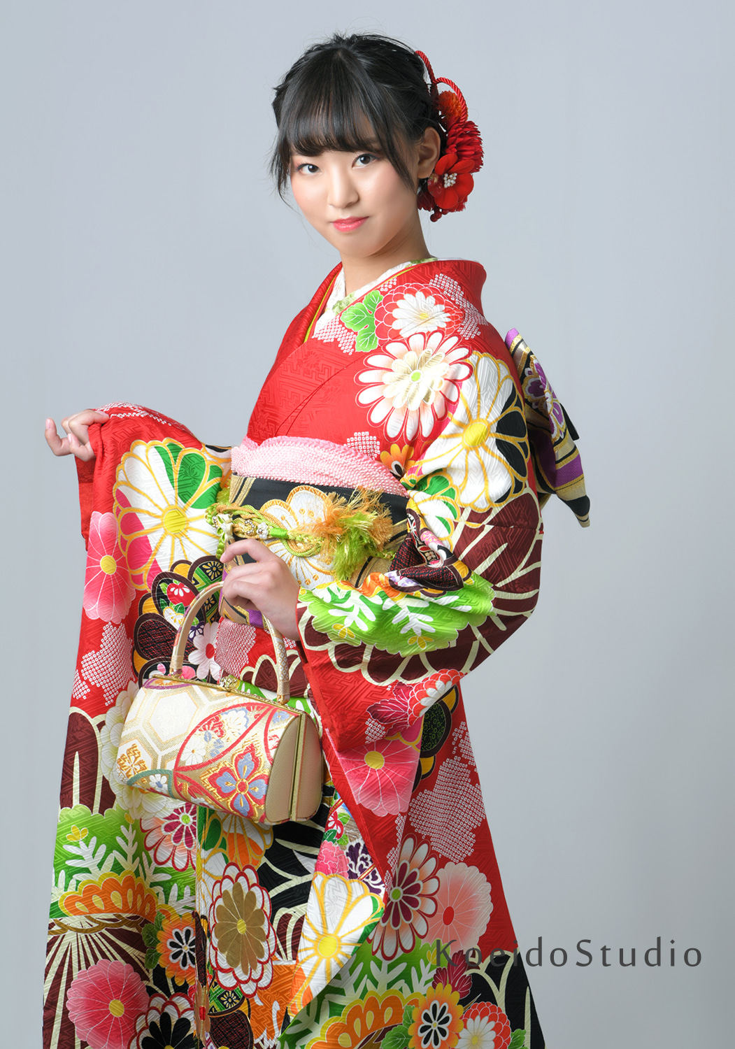 大きい花柄で差し色の緑がステキな振袖でしたよー!!