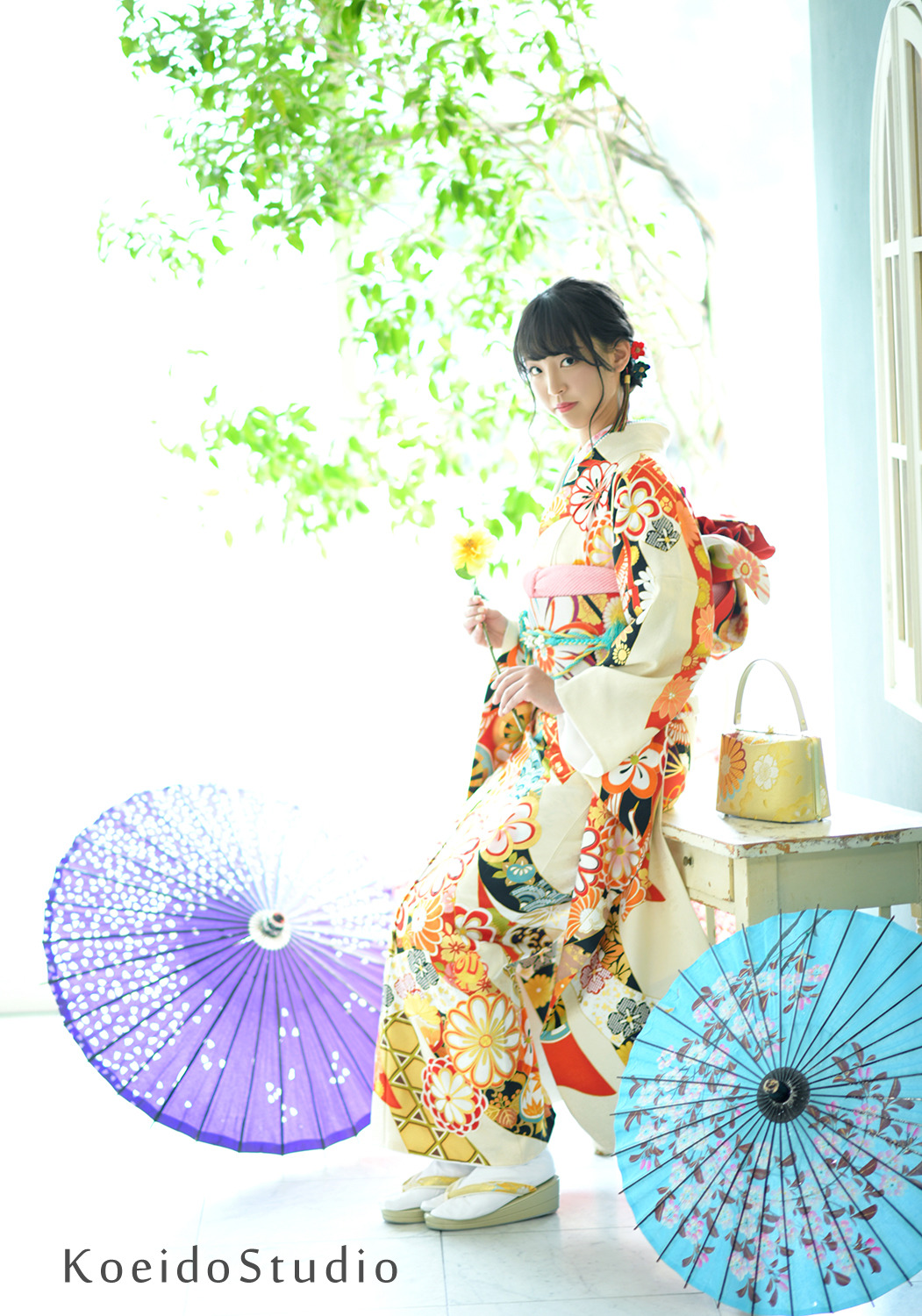 赤とは対照的で白の振袖をオーダーして頂きました。