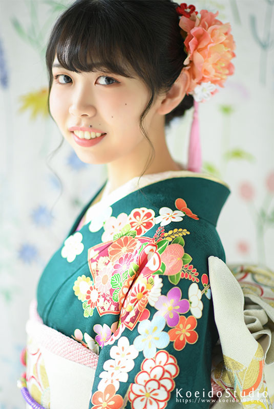 深みのあるグリーンの振袖が本当にとってもよくお似合いです~(●^o^●)