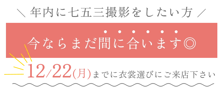 七五三撮影が初めての方も、経験がある方も、まずはココから!たくさんの衣装の中からお気に入りを見つけられることはもちろん、七五三の料金システムや秋のお参りについてのご説明など、七五三の全てがここで解決♪