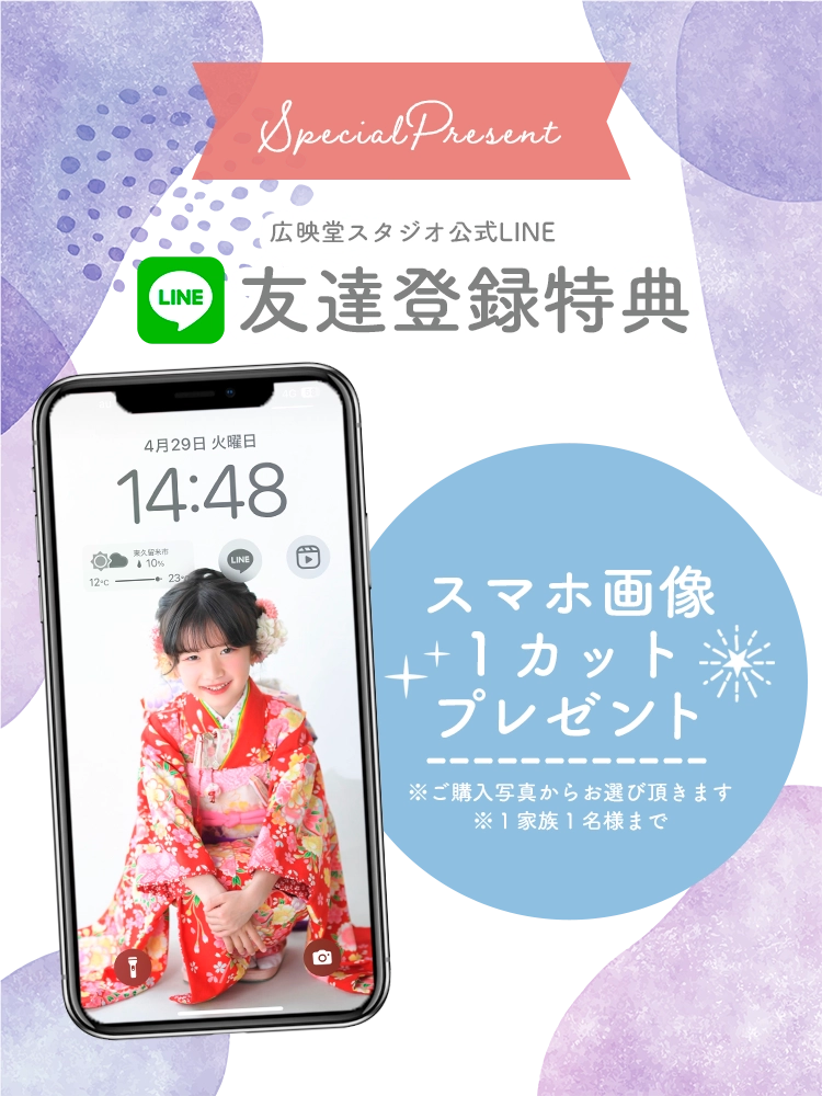 広映堂スタジオの七五三は、1家族様ごとの『貸切スタジオ』だからこそ、お子様の自然な表情を写真に残せます。少し緊張したお顔も、家族で笑い合う笑顔も、大切な成長の1ページ。見返す度に思い出が蘇る、未来の宝物を残しませんか?